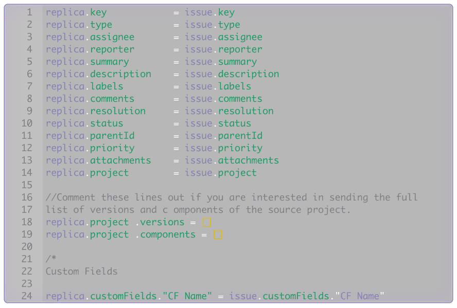 Exalate is flexible enough to cover almost all integration use cases through its Groovy-based scripting engine. You can start with basic sync scenarios out-of-the-box or implement advanced use cases using scripts. With Aida AI, you can prompt your requirements and let AI write the sync rules or customize them yourself. Sync any default or custom properties, set custom mappings, add advanced logic, and manage everything from a unified console.