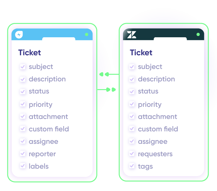 Map and sync default or custom fields between Freshservice and Zendesk with complete control over your side of the connection. Customize what data flows between platforms while keeping sensitive information secure.
