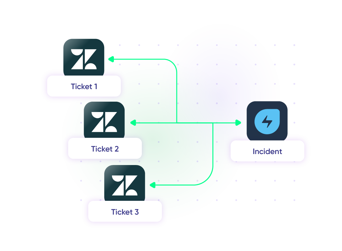 Connect multiple Freshservice incidents to a single Zendesk support ticket to avoid duplication.